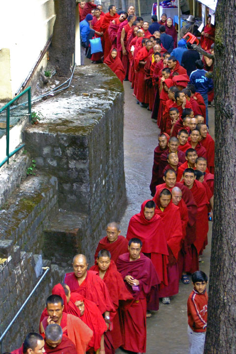 I whisked along an alley crowded with monks and ran into Geshe Kunkhen. He encouraged me, just like lunch at the monastery, to cut directly to the front of the line where people were passing through the metal detector. The security guard refused until I handed him the phone with Lobsang on the other end, explaining the situation in Tibetan.