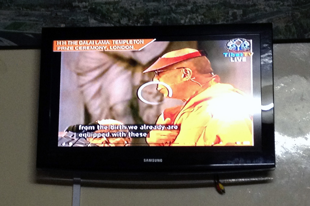 Tibet TV picked up the live Internet stream and broadcast it locally. The stream would disconnect occasionally, and a cursor would appear on the screen, pulling away the video to reveal a Macintosh desktop underneath.