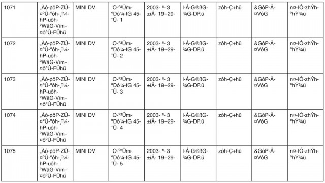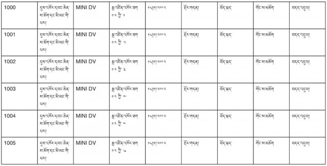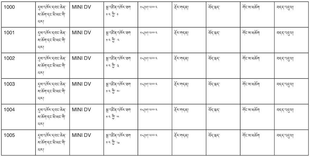 Granted, I can’t read the Tibetan, but it seems straightforward enough. Obviously, this is a log of MiniDV tapes, and all the dates and numbers are written in Tibetan. I scrolled down a bit further, and things got more complicated…