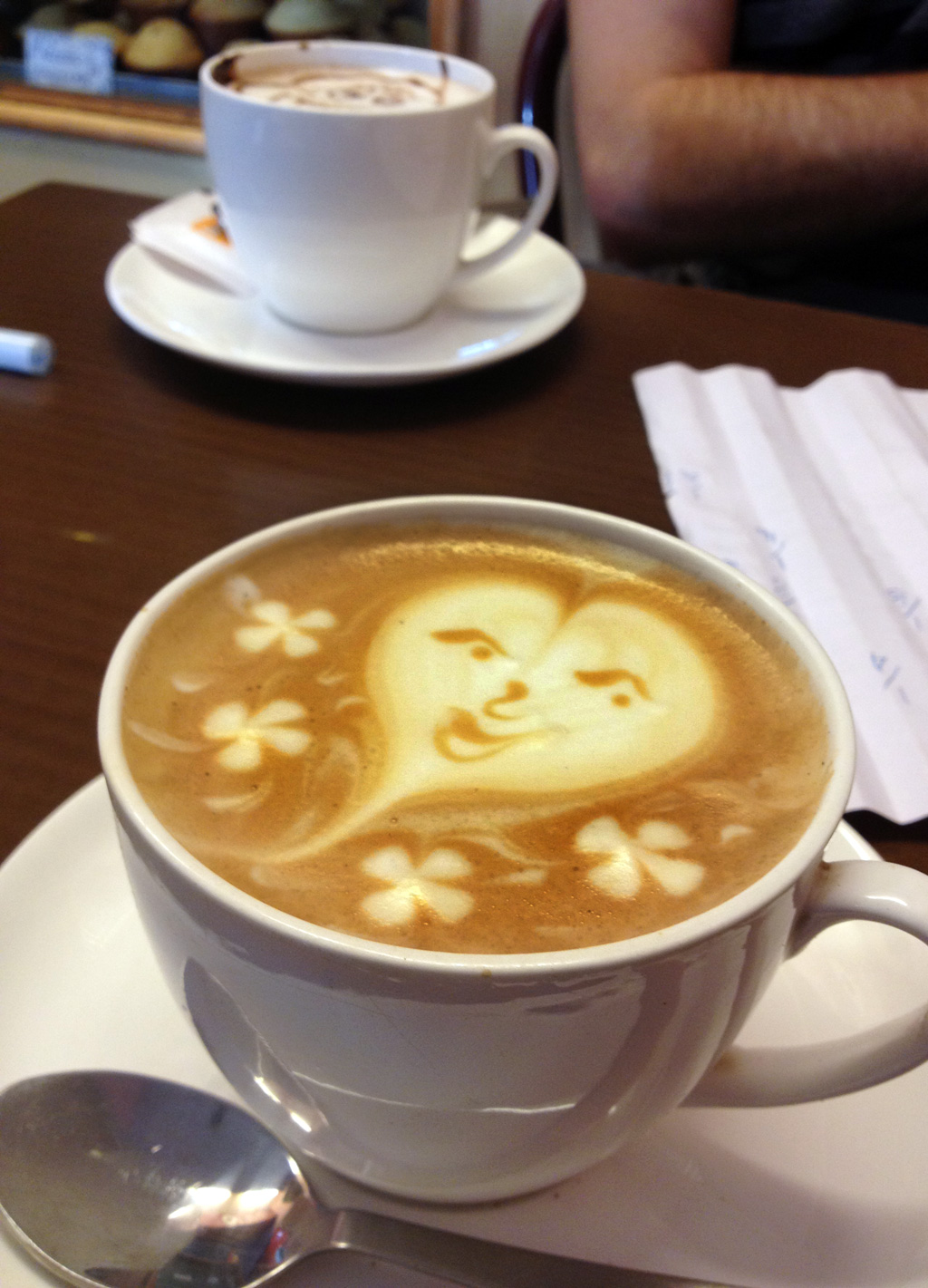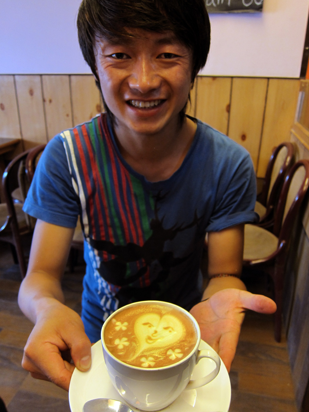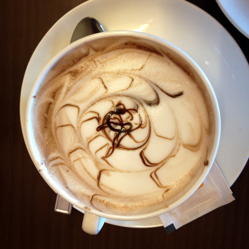 He also mentioned that the staff has exceptional artistic talent in the coffee arts—sometimes they even write the price of the coffee in the drink itself—so I ordered a hot chocolate.