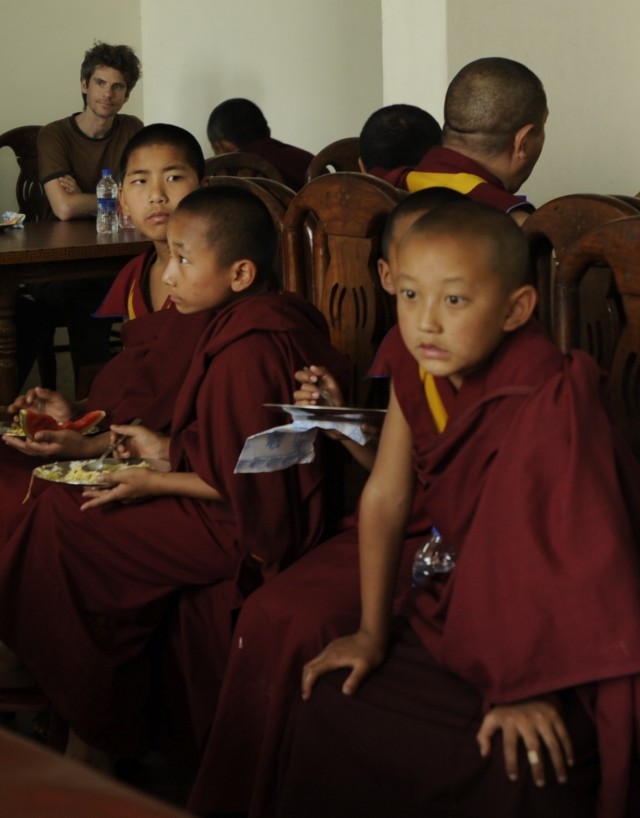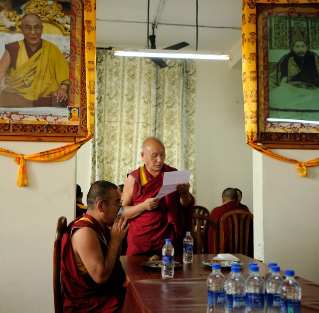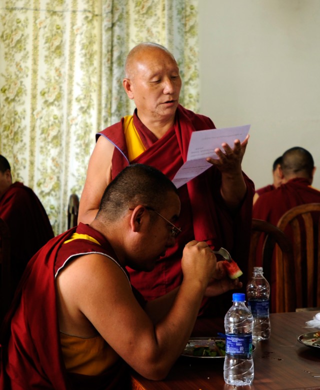 When His Holiness [turned] 60, the monastery stopped to serve meat here. Before then, they had a lot bones, you know? Now [he is] 76—16 years ago. And several monks also purely vegetarian—maybe some [have been for] five years, some [for] six years.