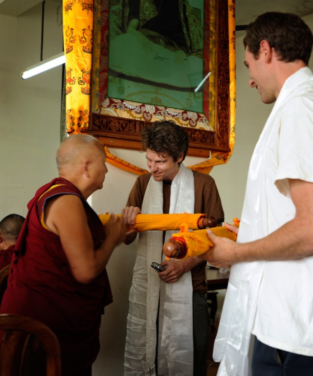 Today the monastery held a special lunch to thank Bennett and myself for working at the monastery. We each received a thangka painting, identified by a B and D, respectively, written on the back.