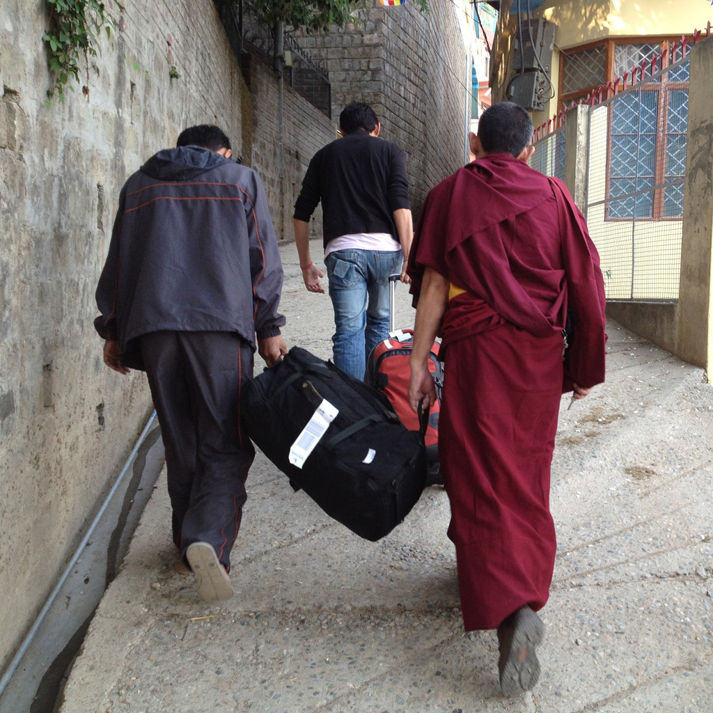 We say goodbye to the view from our porch, to the Archive and the monument just outside, the monastery, the temple and its unceasing crowds, Rabzay at the security gate, the stalls lining Temple Road, the café where we’ve had breakfast so many mornings. I try to imagine all the people in this world I have yet to meet and will someday say goodbye to. I start to notice the little details of this day—the really little ones—and find that they are all unexpected. I never considered the sunlight hitting the wall through the window in exactly this way, or the particular satisfaction from tightening the strap of my backpack for the long walk down the hill. It all worked out more or less.