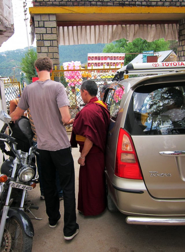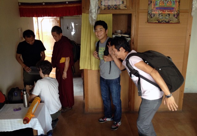 We take the Monastery car and arrive at the airport around 2 PM. I have to remember to ask Bennett for the Go Pro footage he shot on the way down. The heat here suggests that Delhi will be unbearable. The final goodbye is a brief exchange of khatas and waves. Thank you Bennett-la, Dave-la. See you again soon. As Lobsang said last time: “There is no reason to be sad. Just stay in touch.”