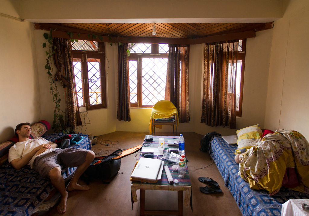 Fires burn day and night on the hillside. On hot days and on sick days, the smoke can be oppressive.