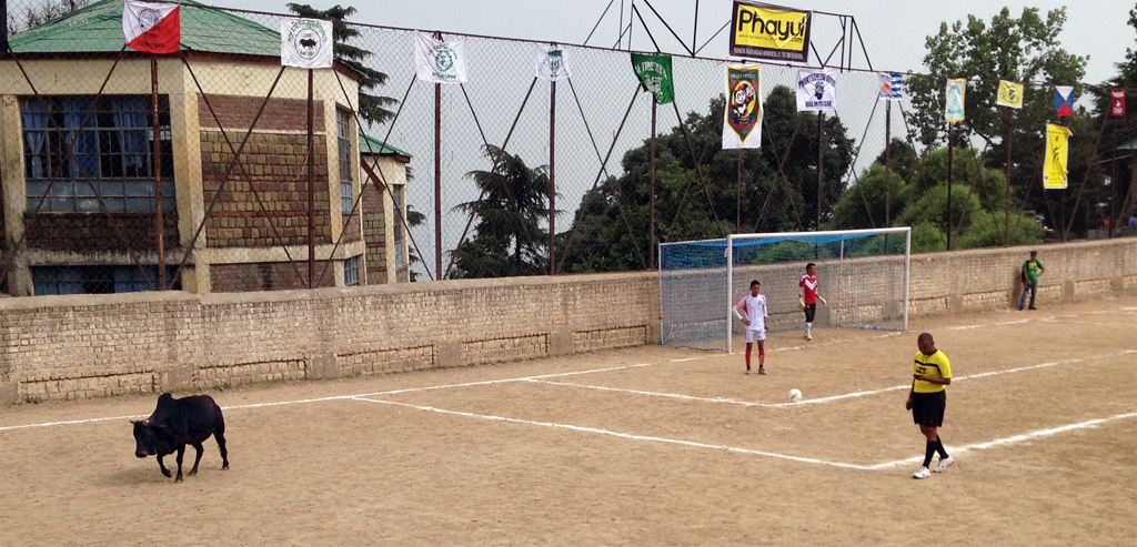 Cows occasionally disrupt games on the TCV field