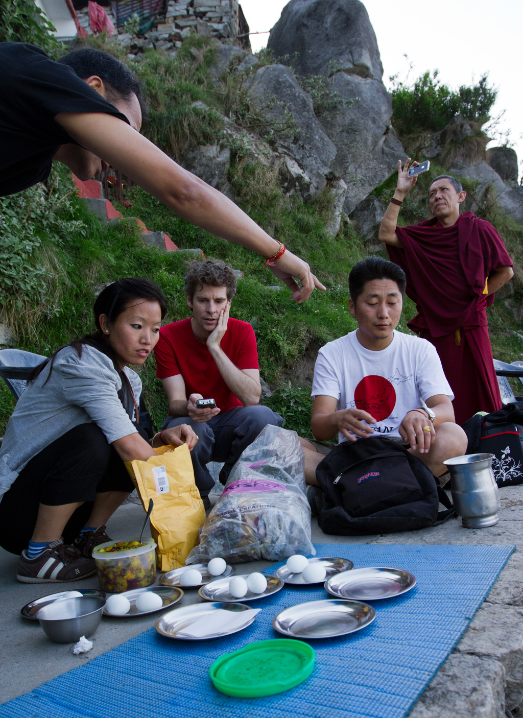 Lhakpa and Passang woke up at 3:30 this morning to finish making breakfast for everyone—boiled eggs, potatoes (aloo), and puris.