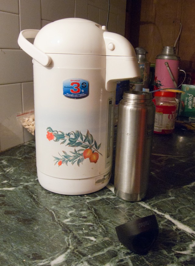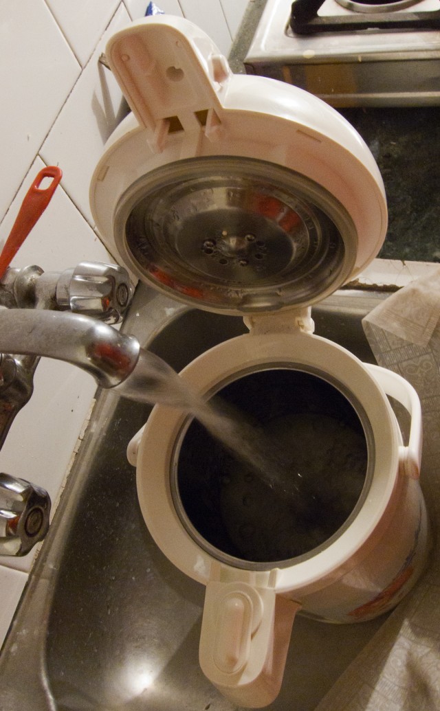 Chemey loaned us his water boiler, which we have been using religiously each evening, then leaving it to cool over night.