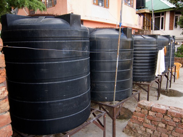 As we discovered last night, at the height of our first bout of food poisoning (and all that entails), there is no guarantee that the tanks will have water in them. I stumbled up to the roof to take a look at the situation. Banging on the tanks, it seemed like they were pretty empty. I think we used too much water doing laundry.